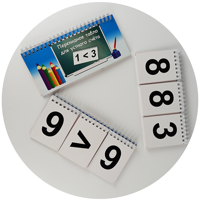 Наличие карточек с цифрами и знаками позволяет учителю использовать широкий спектр заданий для устного счета.